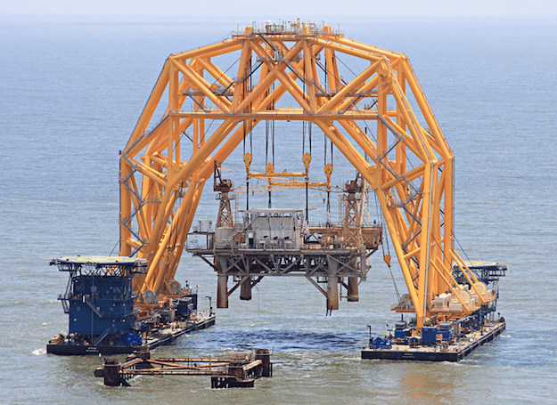 Versabar’s VB 10,000 lift system is used in the decomissioning of an 1,800-ton topside. Photo (c) Versabar