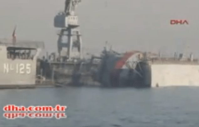 The tugboat, TCG Degirmendere, was being lowered into the sea after maintenance work at the Izmir shipyard when it suddenly listed to one side, taking on water, the military said in a statement. (Writing by Ece Toksabay; Editing by Louise Ireland)