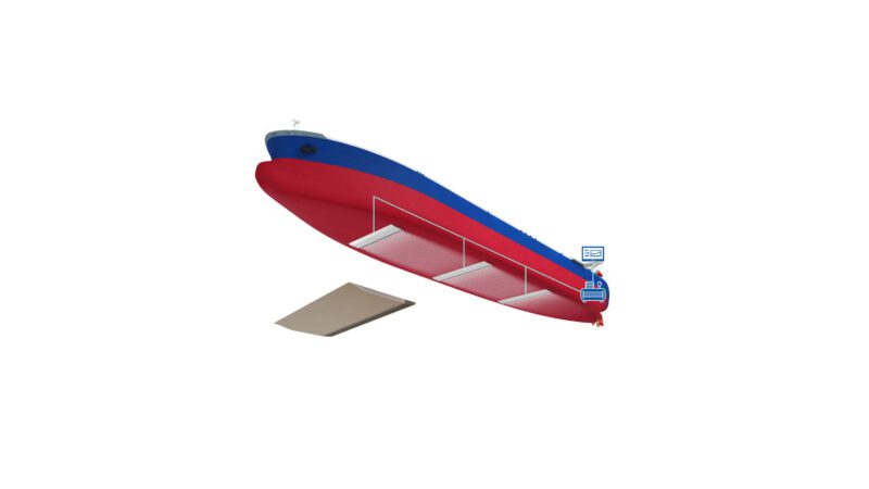 OceanGlide, using fluidic technology, creates highly streamlined airflow sections on a vessel’s flat bottom. Each section has an independently regulated fluidic band that produces a controlled air layer. This feature ensures optimal efficiency, maximum coverage, and reduced compressor power. The system’s high efficiency in controlling air flow not only ensures an effective air layer with fewer compressors but also provides the added advantage of conveniently positioning them anywhere on board.