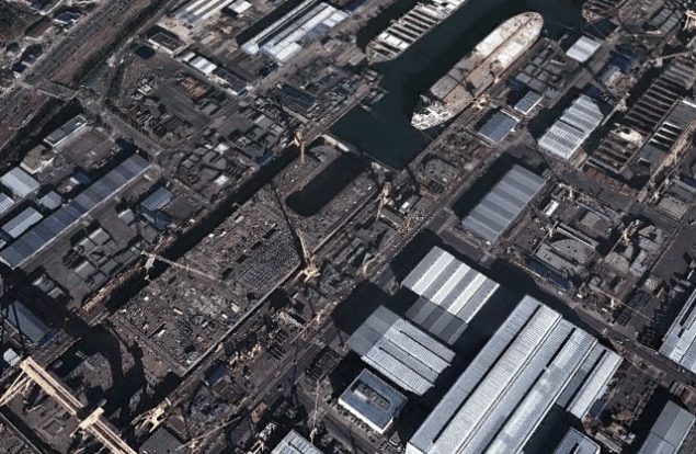 Allseas’ monstrosity, the Pieter Schelte, is currently under construction at Daewoo Shipbuilding and Marine Engineering (DSME) in Okpo, Korea. As you can see from the below satellite image, it nearly completely fills up the entire dry dock at DSME.
