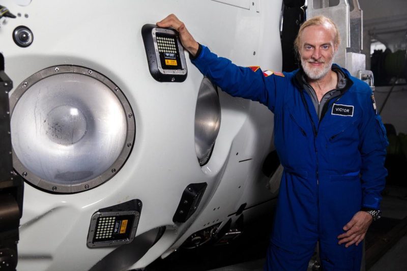 Victor Vescovo, founder and financier of The Five Deeps Expedition, stands beside his deep ocean submersible, DSV Limiting Factor. Photo courtesy Five Deeps Expedition/