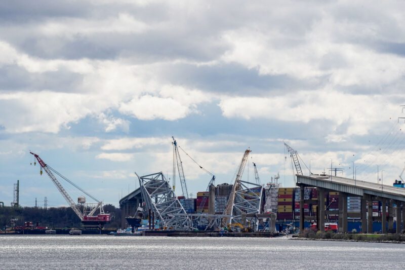 A cargo ship crashed into the Francis Scott Key Bridge on March 26, sending it splashing into the harbor. Work to clear the wreckage and restore traffic through the Mid-Atlantic state’s shipping channel is ongoing.