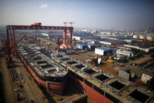 A vessel is seen under construction at the Waigaoqiao shipyard in Shanghai November 5, 2013. REUTERS/Carlos Barria