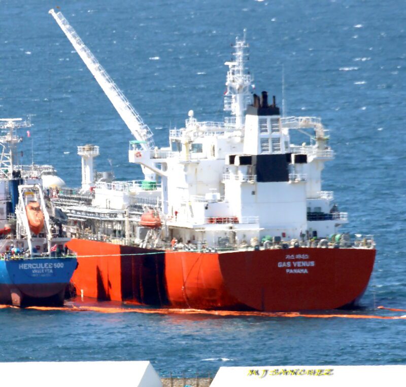 The spill occurred at approximately 8:22 a.m. on Tuesday morning in the southern part of the Western Anchorage during a ship-to-ship refueling operation involving the Panama-flagged LPG tanker Gas Venus.