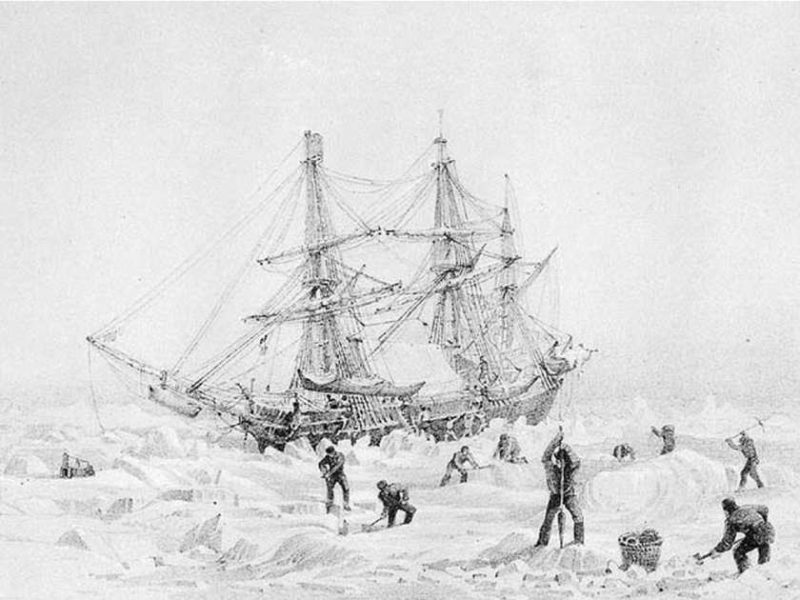 Illustration shows HMS Terror stuck in ice. Credit: Creative Commons