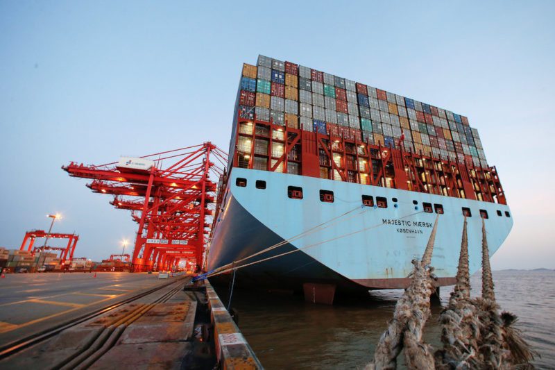 A Maersk Triple-E giant container ship is seen at the Yangshan Deep Water Port, part of the Shanghai Free Trade Zone, in Shanghai, China, September 24, 2016. REUTERS/Aly Song
