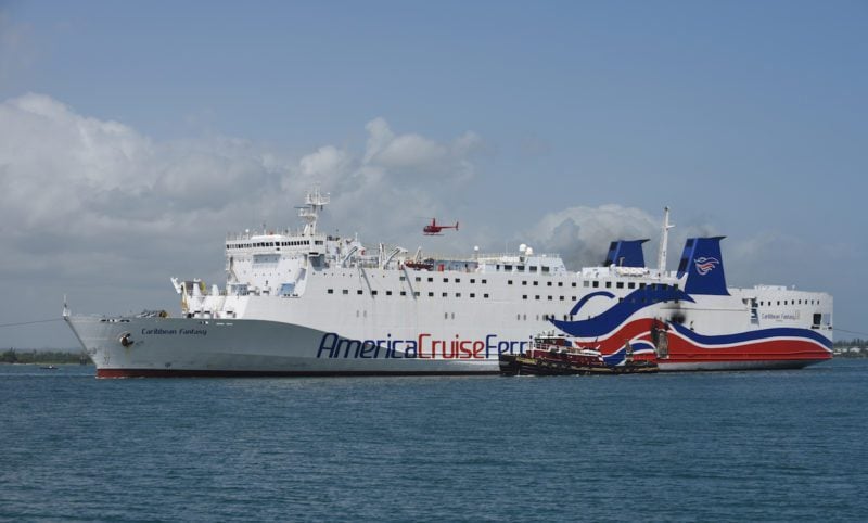 The Caribbean Fantasy caught fire last Wednesday approximately 2 nautical miles north of San Juan Harbor in Puerto Rico leading to the evacuation of all 511 passengers and crew. The ferry later ran aground just offshore Punta Salinas, where the fire continued to burn inside the ship’s engine room. The ferry floated free Friday (Aug 19) night and was moved to San Juan on Saturday.