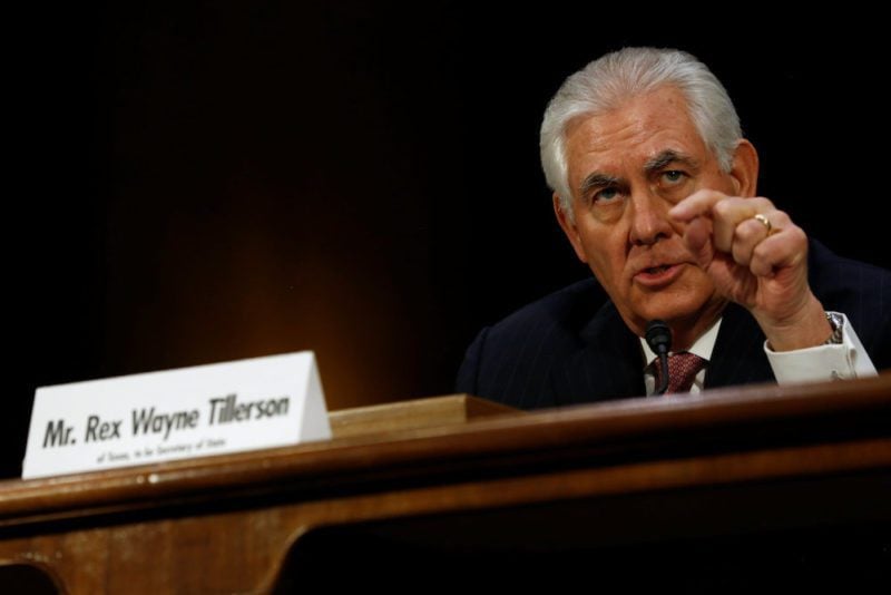 Rex Tillerson, the former chairman and chief executive officer of Exxon Mobil, testifies before a Senate Foreign Relations Committee confirmation hearing on his nomination to be U.S. secretary of state in Washington, U.S. January 11, 2017. REUTERS/Jonathan Ernst