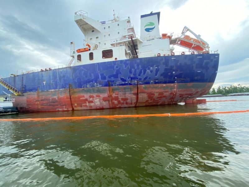 Coast Guard Sector New Orleans personnel respond to a discharge of oil on the Lower Mississippi River near Kenner, Louisiana on July 28, 2022. The tanker ship Hafnia Rhine discharged an estimate of 2,100 gallons of oil before its crew secured the source of the discharge. (U.S. Coast Guard courtesy photo by Sector New Orleans)KENNER, LA, UNITED STATES (U.S. Coast Guard courtesy photo by Sector New Orleans)KENNER, LA, UNITED STATES (U.S. Coast Guard courtesy photo by Sector New Orleans)