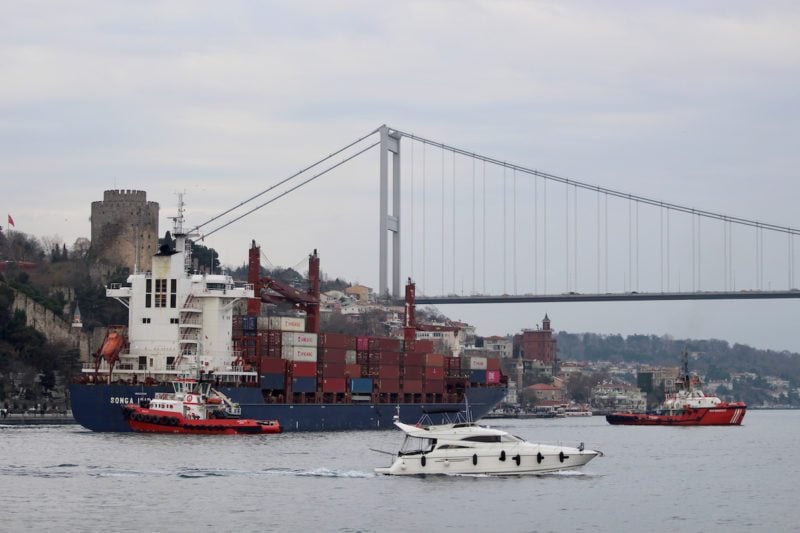 The Bosphorus, among the world’s busiest shipping routes, was temporarily closed to international traffic as boats towed the vessel south towards the Sea of Marmara.