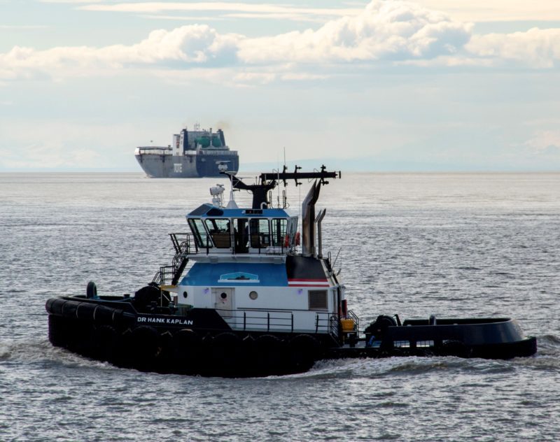 The Dr Hank Kaplan is homeported in Anchorage, Alaska and painted with the recognizable blue and white colors of Cook Inlet Tug & Barge. See www.cookinlettug.com for more information.