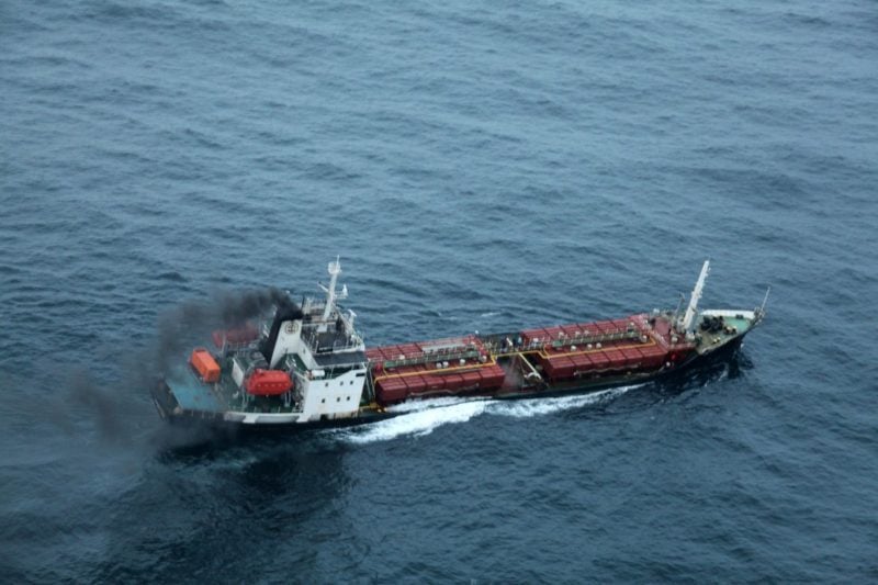 The Navy reported that the vessel was carrying 1,794 metric tons of asphalt.