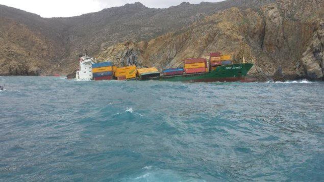 A statement from the Hellenic Coast said authorities were coordinating a response for the Turkish-flagged containership, MV Yusuf Cepnioglu, after the ship went aground early Saturday morning along the rocky northern shore of Mykonos Island.