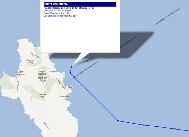Upon departure from the port of a Giglio, an island off the northwestern coast of Italy, the cruise ship Costa Concordia struck a reef, tearing a 50 meter-long gash in her hull. Reports indicate the ship’s captain, Commander Paolillo, attempted to steer the ship toward shallower waters to enable an easier lifeboat evacuation. A reported 3,200 passengers and 1,000 crew were onboard when she grounded.
