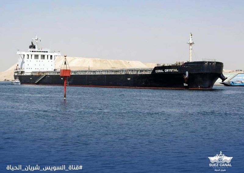 The Suez Canal Authority said the Panama-flagged bulk carrier Coral Crystal, carrying a load of 43,000 tons, suffered a ‘temporary delinquency’ at kilometer 54 during a southbound convoy (from the north). The incident occurred in an area known as the “New Suez Canal,” on the north end of the waterway where there is a second land of traffic.