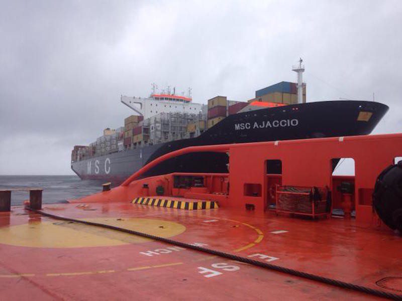 Spain’s maritime emergency agency Salvamento Marítimo reports that the container MSC Ajaccio requested assistance Thursday after losing power about 18 miles west of Cape Finisterre, Spain in the Atlantic Ocean.
