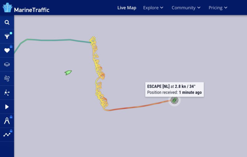 AIS data shows the vessel as being underway from Rotterdam to Helsinki, Finland with its status as “Not Under Command”.