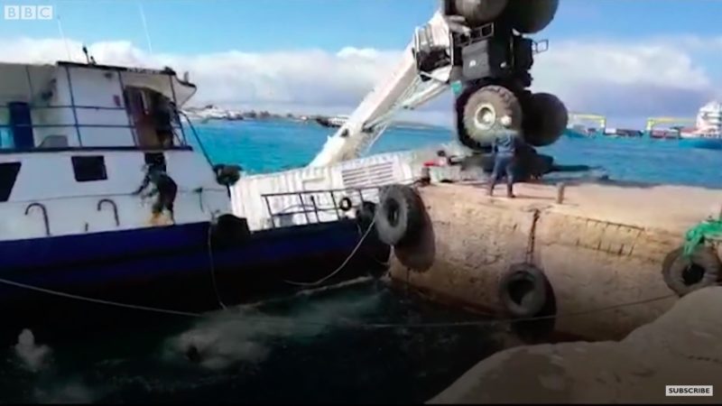 The barge sank on Sunday after a crane at the La Predial dock of San Cristobal – the easternmost island of the Galapagos archipelago – fell while unloading cargo, Ecuador’s navy said in a statement on Twitter.