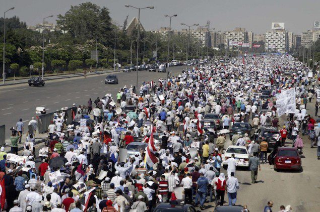 Members of the Muslim Brotherhood and supporters of deposed Egyptian President Mohamed Mursi shout slogans during a rally and march towards Rabaa Adawiya Square where they are camping, in Cairo July 26, 2013. REUTERS/Amr Abdallah Dalsh
