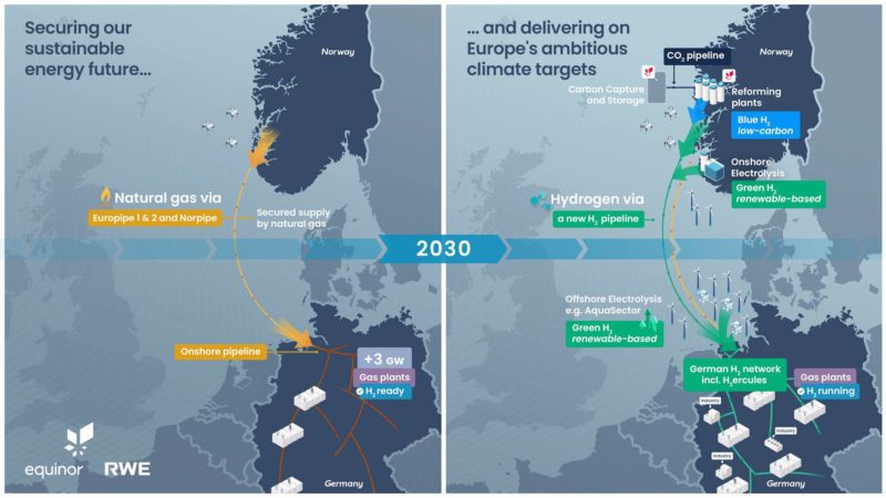 The next decarbonization step is to replace natural gas with low carbon hydrogen, produced in Norway and delivered via a hydrogen pipeline to Germany, according to Equinor. Over time, large-scale renewable hydrogen production from offshore wind projects in Germany and Norway will complement and eventually replace low carbon hydrogen.