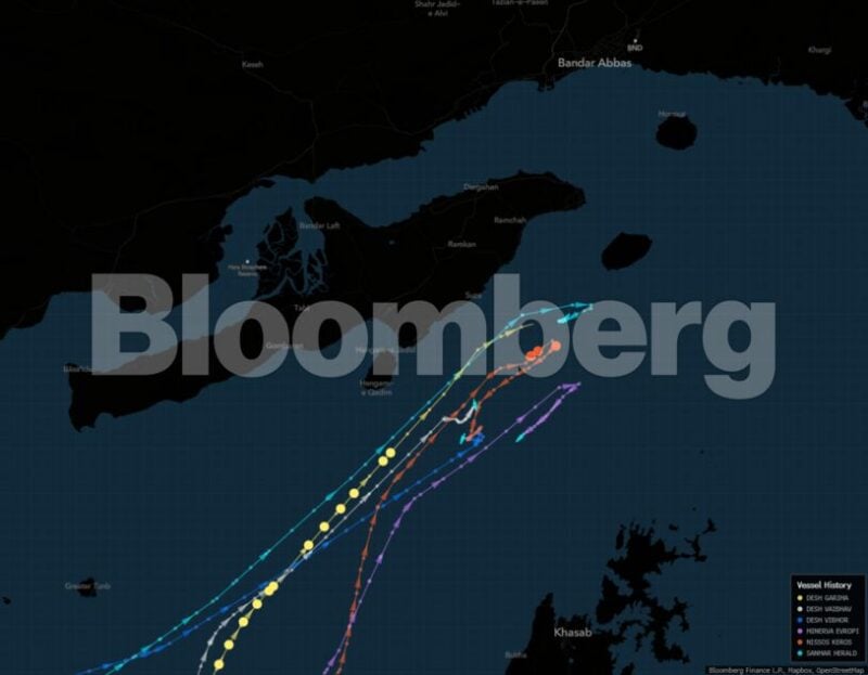 The Greek and Indian tankers had all made their journeys northeast toward Hormuz from waters off Dubai, filled with crude, before they began turning around on Saturday morning. Some are now idled in locations not far from where they u-turned, next to Iran’s Qeshm island, while a sixth has not sent a geolocation signal for several hours.