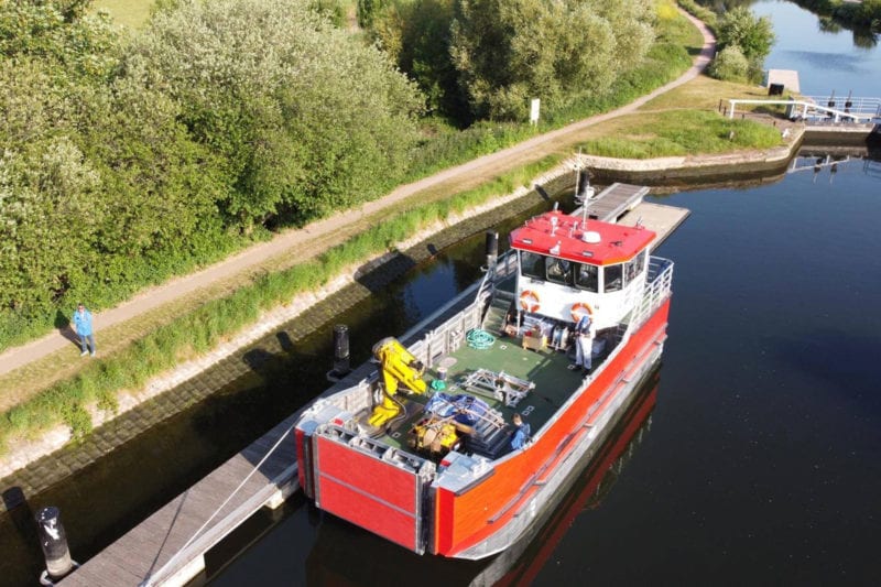 The working deck accommodates one 20ft container or two 10ft containers with twist-lock fittings and additional lashing points. A folding bow ramp and removable vehicle ramps combine with the shallow forefoot for bow loading, with the vessel being designed to load and accommodate a telehandler. The Heila HLM10-2S deck crane is capable of lifting loads of 2 tonne to the cargo deck. A kedge anchor and deck winch further enhance the functionality of the vessel.