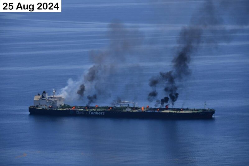 The vessel was initially attacked on Wednesday after multiple skiffs approached the vessel off Yemen’s coast. Hours later, three projectiles struck the tanker’s starboard quarter, causing a loss of propulsion, damaging the engine compartment, and igniting a fire. The crew abandoned the vessel and were later rescued by a French frigate involved in the Operation ASPIDES.