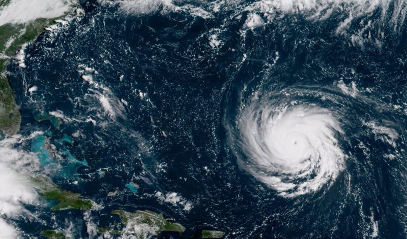 Satellite data indicate that maximum sustained winds have increased to near 115 mph (185 km/h) with higher gusts – a category 3 hurricane on the Saffir-Simpson Hurricane Wind Scale. Further strengthening is anticipated, and Florence is expected to be an extremely dangerous major hurricane through Thursday. Image credit: NOAA
