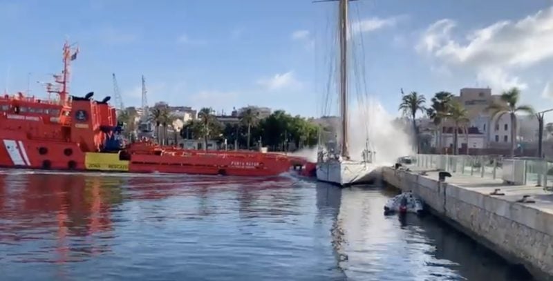 The incident took place June 10th in Tarragona, Spain when the emergency rescue tug Punta Mayor apparently suffered a mechanical problem and backed into a 49.5-meter schooner moored at the marina, causing it to sink.