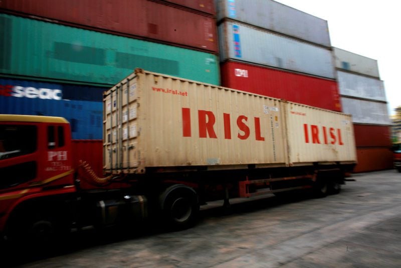FILE PHOTO: A truck carrying Islamic Republic of Iran Shipping Lines (IRISL) containers arrives a depot in northern Singapore February 4, 2012. REUTERS/Thomas White/File Photo