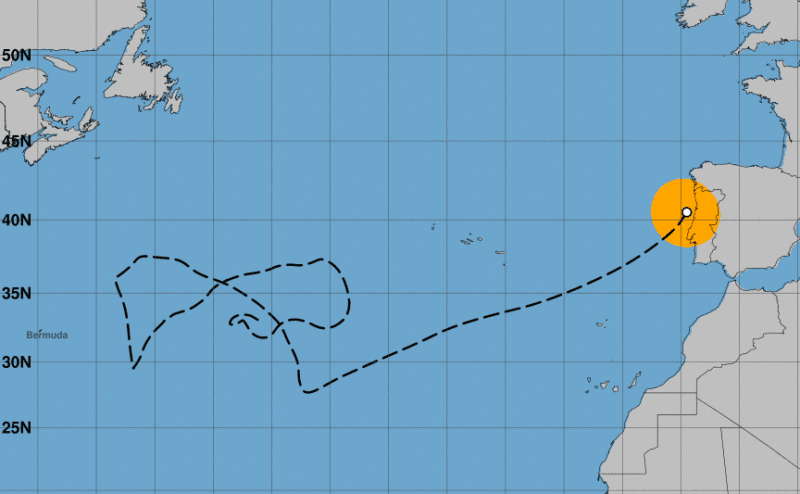 “Dangerous winds, surf and heavy rainfall will affect portions of Portugal and Spain,” the U.S.’s National Hurricane Center said in an advisory.