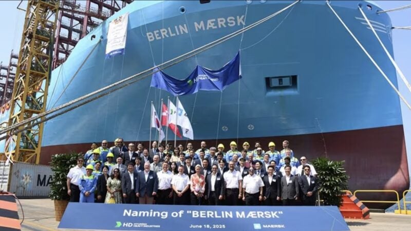 A.P. Moller – Maersk has named its newest and largest dual-fuel containership, the Berlin Mærsk, during a ceremony at Hyundai Heavy Industries’ shipyard in Ulsan, South Korea on Wednesday.