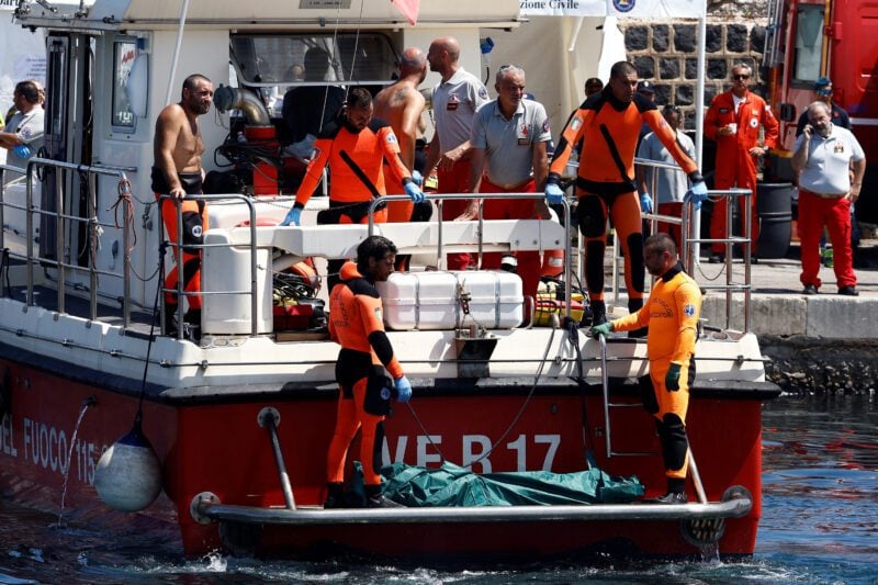 Divers from the local firefighter corps spent most of the week attempting to retrieve six bodies stuck inside the ship, which sank to a depth of about 50 meters (164 feet) about a half mile off the coast of Porticello. The body of a seventh victim, the yacht’s chef, had been retrieved earlier.