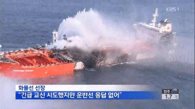 The fire was brought under control within a matter of hours, but photos of the Maritime Maisie show extensive damage around amidships. The ship was laden with 29,337 tons of inflammable chemicals when the collision occurred and 4,000 tons of paraxylene and acrylonitrile burned in the fire, according to the Yonhap.