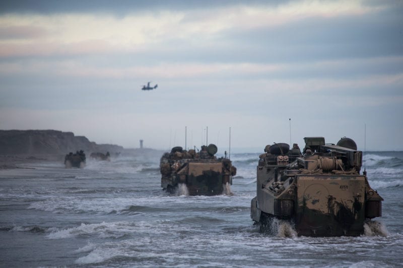 File Photo: U.S. Marines with the 15th Marine Expeditionary Unit drive AAV-P7/A1 assault amphibious vehicles through the surf during sustainment training at Marine Corps Base Camp Pendleton, California, July 14, 2020. U.S. Marine Corps Photo