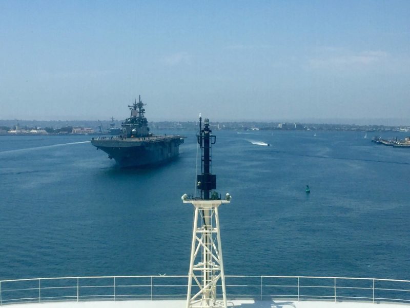 Coming across a warship at sea can be challenging. No one can easily divine a warship’s intentions. Is this a point-to-point transit or an operation that will result in sudden and unpredictable course and speed changes? In addition, because merchant ships typically only have one lookout charged with many responsibilities, a warship’s small changes in course may not be noticed for some time, and changes in speed not at all.