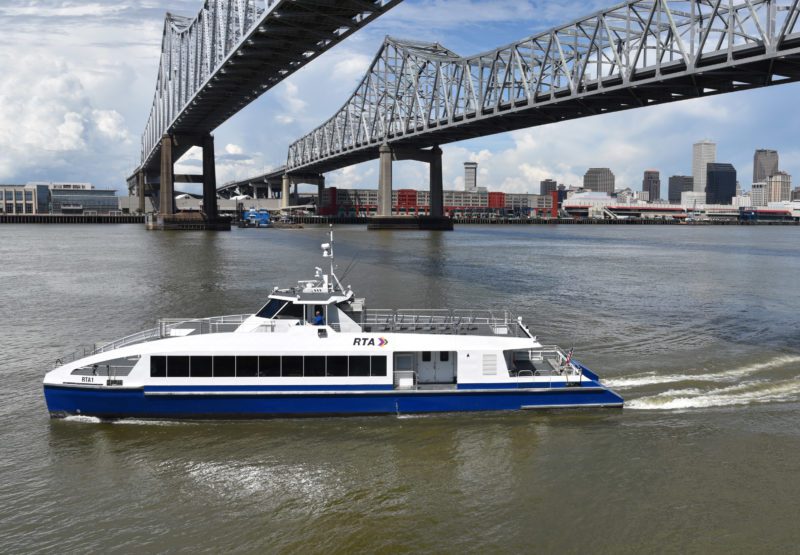 Press Release – Jeanerette, LA – November 18, 2018: Shipbuilder Metal Shark is pleased to announce that both new 105-foot, 150-passenger, high speed aluminum catamaran passenger ferries constructed for the New Orleans Regional Transit Authority (RTA) have been completed and are ready to enter service.