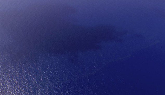 A view of oil slicks (pale line near the bottom right) spotted in an area of the South China Sea about 100 nautical miles (185 km) from Tok Bali Beach in Malaysia’s Kelantan state March 9, 2014. REUTERS/Malaysian Maritime Enforcement Agency/Handout via Reuters