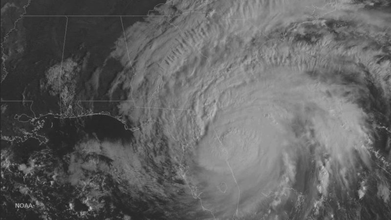 Image captured on October 7, 2016 shows Hurricane Matthew’s western eye wall beginning to brush portions of the northeast coast of Florida. Credit: NOAA Environmental Visualization Laboratory