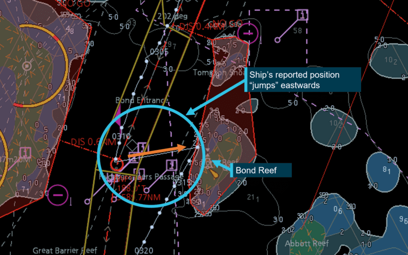 A bulk carrier narrowly avoided grounding in the Great Barrier Reef after a GPS unit onboard started providing false information, an Australian Transport Safety Bureau (ATSB) final report reveals.