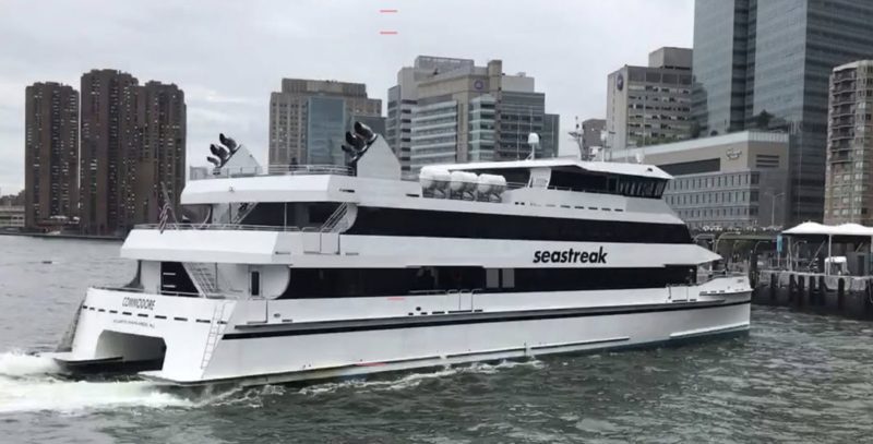 The high-speed passenger ferry Commodore, owned and operated by Seastreak, was transiting northbound on the East River on June 5, 2021, when the catamaran lost primary steering and speed control to both of its port hull water jets and then grounded. One minor injury was reported among the seven crewmembers and 107 passengers on board. The grounding resulted in $2.5 million in damages to the vessel.