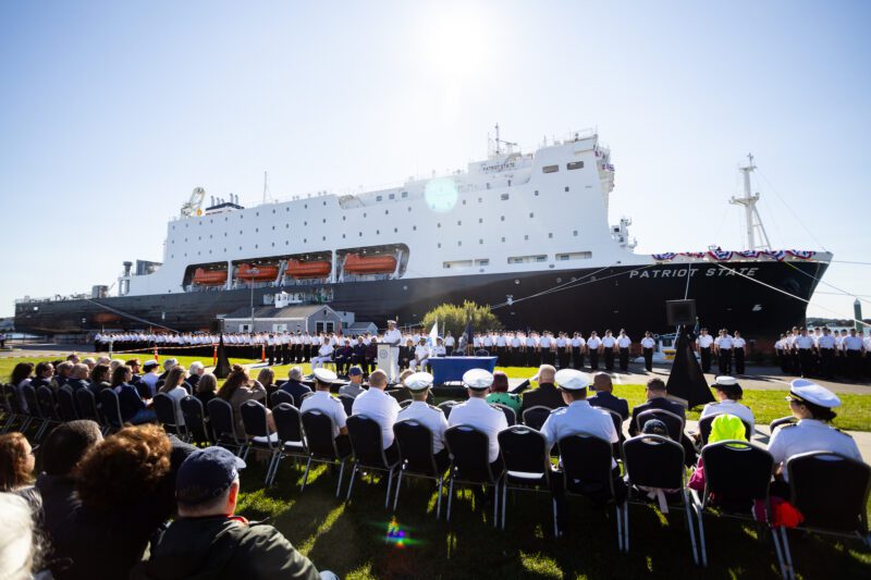 The Patriot State replaces Mass Maritime’s previous training ship, Kennedy, built in 1967 as the SS Velma Lykes at Avondale Shipyards in New Orleans. The TS Kennedy was transferred to Texas A&M Maritime Academy in 2023 and currently serves as its training ship.