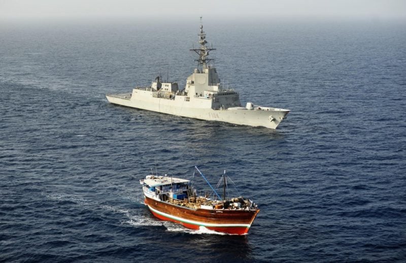 The Spanish Navy frigate ESPS Méndez Núnez chases down a suspected pirate mothership off the coast of Somalia in February 2013. Photo: EU Naval Force Somalia
