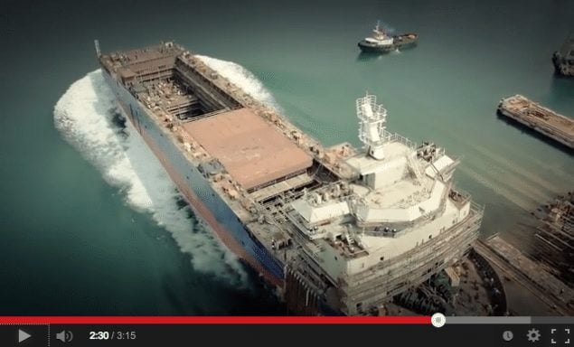Not only did Jumbo, the Netherlands-based maritime heavy lift firm, take cool photos from the recent launching of the Jumbo Kinetic from Croatia’s Brodosplit shipyard, but they rigged up multiple HD GoPros and hired a quadcopter to fly around the ship and shoot HD video.