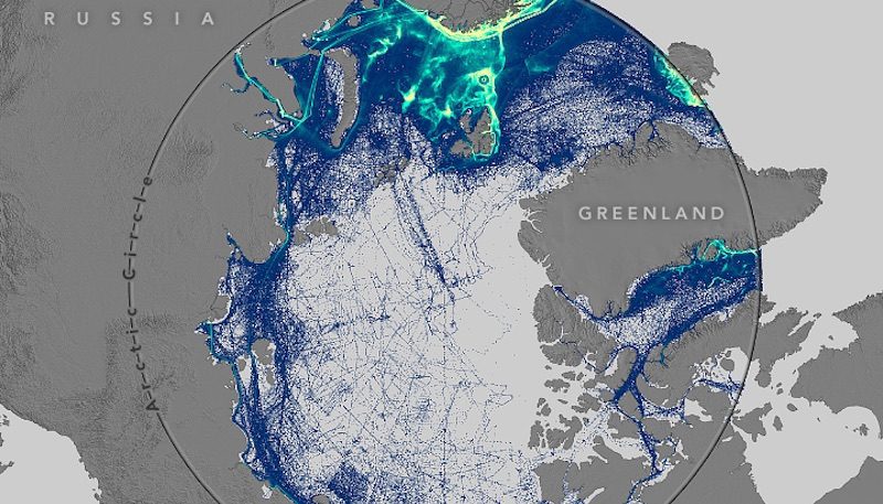 To illustrate this increase in ship activity in the Arctic, a team of scientists has banded together to analyze and map more than 120 million data points in order to track where ships are most using the region.