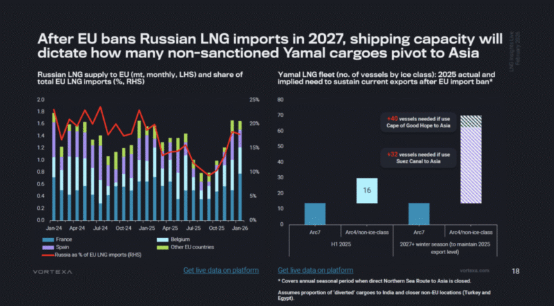 Russia’s increased needs for LNG carriers following the upcoming EU import ban. (Source: Courtesy of Vortexa)