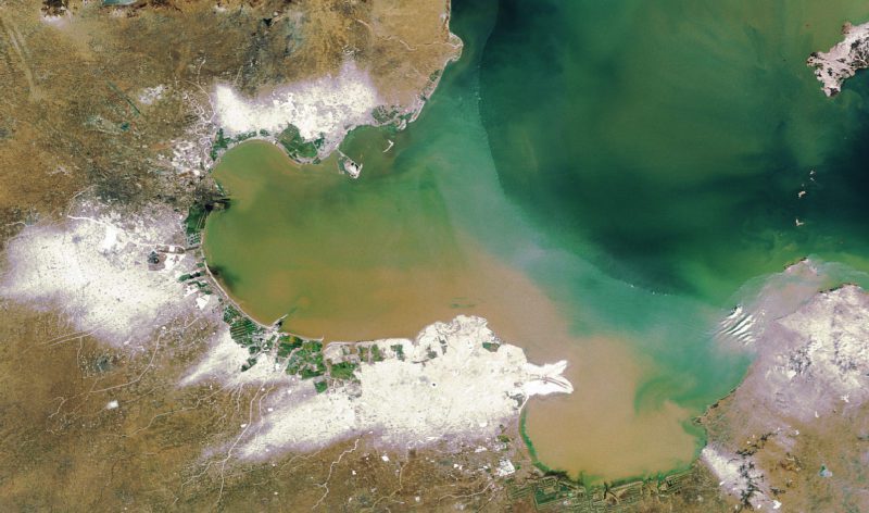 This Envisat image, shows parts of the Hebei Province, the Tianjin Municipality and the Bohai Bay of the People’s Republic of China. Via Wikipedia