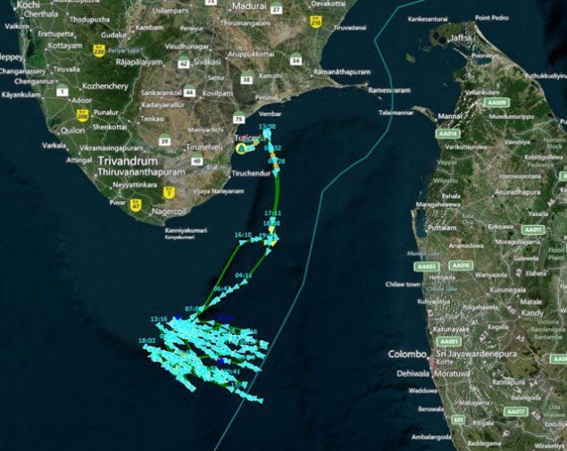 On the 9th of October, the vessel started to head toward shore and anchored near Tuticorin Port (Tamil Nadu state), where it had previously anchored a month ago, before leaving to its last patrol activity. It anchored 13 nautical miles offshore, just outside India’s territorial waters.