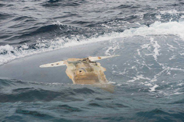 Overturned hull of S/Y Cheeki Rafiki, U.S. Navy Photo