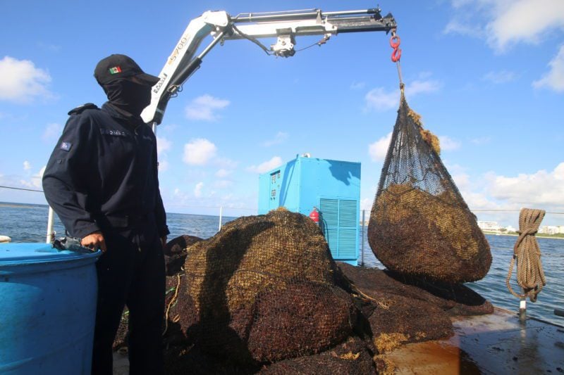 “We don’t expect this to end anytime soon,” Zenteno said onboard a seaweed-clearing ship known as a “sargacero,” one of 12 deployed by the Navy.